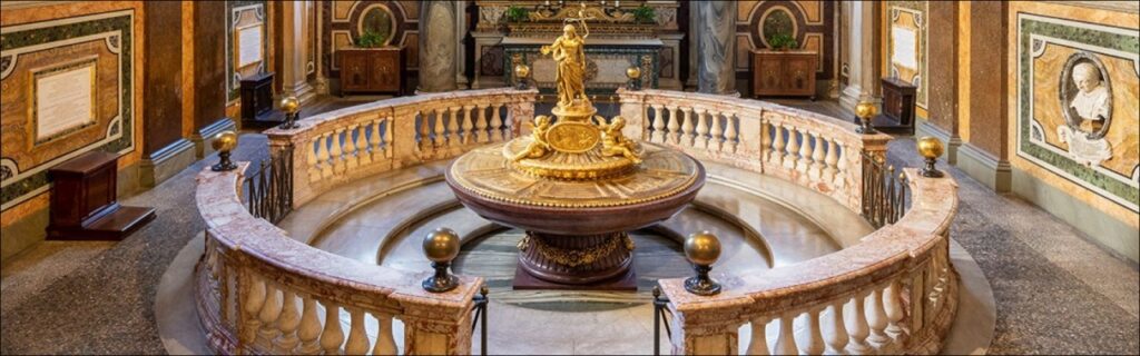 Baptistry di Santa Maria Maggiore adalah ruang bersejarah yang dahulu merupakan TEMPAT paduan suara musim dingin yang dibangun oleh Flaminio Ponzio pada awal abad ke-17, dihiasi fresko Passignano dan relief Assumpta karya Pietro Bernini. Pada masa Paus Leo XII, ruang ini diubah menjadi tempat pembaptisan dan dilengkapi kolam porfiri merah yang megah. Di sini pula diabadikan peristiwa penting tahun 867, ketika Paus Adrianus II menyetujui penggunaan bahasa Slavonik dalam liturgi, sebuah warisan yang kini dikenang melalui plakat-plakat persembahan bangsa-bangsa Slavia.