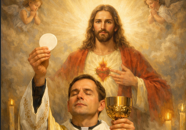 Hanya uskup atau imam yang dapat mengkonsekrasi Ekaristi, karena hanya mereka yang telah ditahbiskan dan dipersatukan secara khusus dengan Kristus, sehingga dapat bertindak dalam pribadi Kristus sendiri. Melalui kuasa Tahbisan Suci, imam dan uskup mengucapkan kata-kata Kristus: “Inilah Tubuh-Ku” dan “Inilah piala Darah-Ku.”
